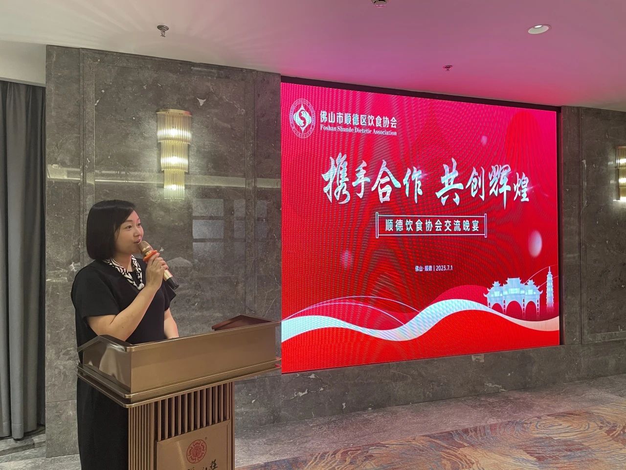 7月1日晚,顺德区饮食协会“携手合作,共创辉煌”主题交流晚宴在聚福山庄(大良店)幸福厅成功举办,为顺德区饮食协会荣誉会长区剑辉先生及顺德区饮食协会常务副会长吴素芬女士——佛山市顺德区猪肉婆私房菜有限公司授牌。晚宴由秘书长何凤鸣女士主持,会长卢远森先生、一众常务副会长单位代表、监事长单位代表、副会长单位代表等出席了晚宴。